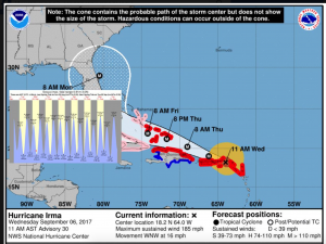 Ураган "Ирма" в Атлантическом океане усилился до четвертой категории мощности. Власти Доминиканы заарне предупреждают жителей и предлагают перебраться повыше в горы.